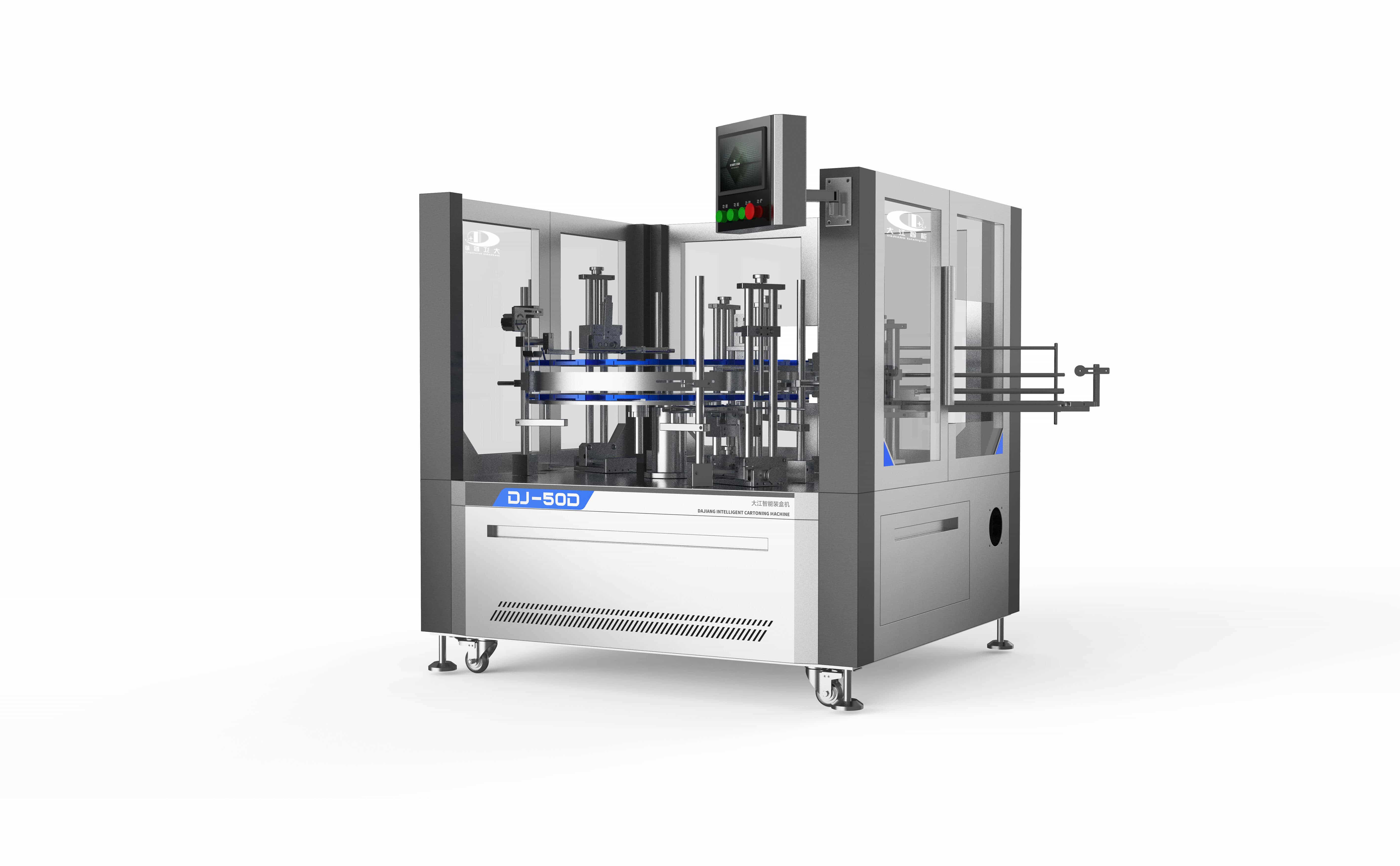 DJ-50多功能立式裝盒機適應:制藥行業,食品行業,化妝品行業,電子行業紙盒立式自動成型包裝。